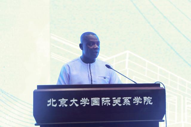 Mr. Yang Guang (Fourth-year Doctoral Student from Ghana) shared his experiences over the past three years at PKU. He spoke movingly about his journey from aspiring to enter PKU to actually becoming a member of the university, stressing that PKU is not only an honor but also a profound responsibility. He urged new students to study diligently, actively engage in practice, broaden their horizons, and grow into young people of ideals and responsibility.